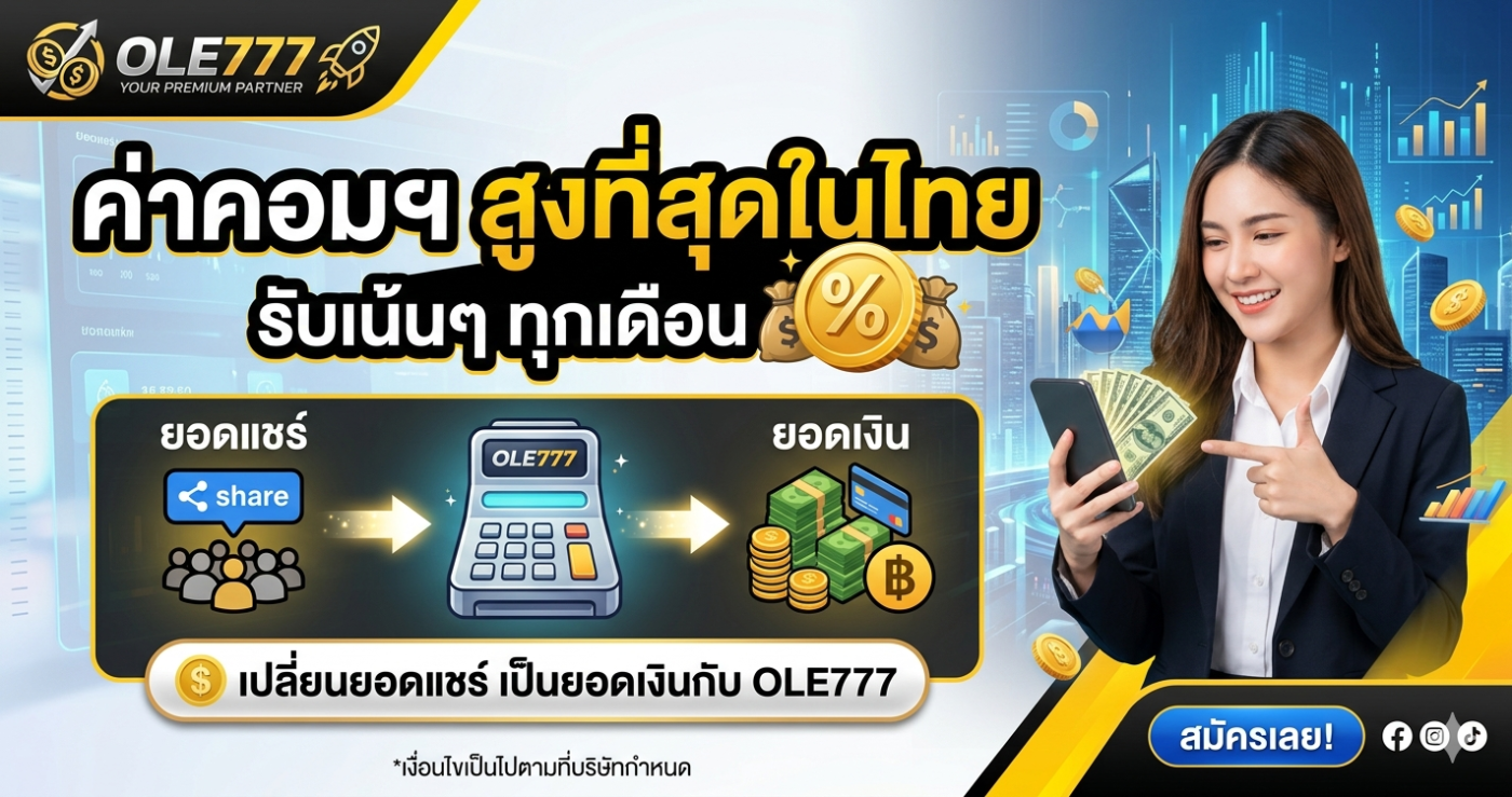 อย่าปล่อยให้ยอดแชร์ของคุณเสียเปล่า เปลี่ยนทุกการเข้าชมให้เป็นเม็ดเงินมหาศาลกับ OLE777 ได้ตั้งแต่วันนี้