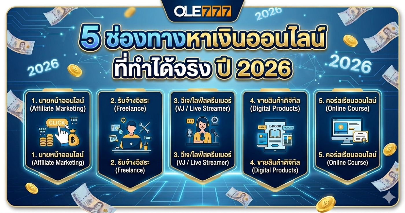 5 ช่องทางหาเงินออนไลน์ที่ทำได้จริง ปี 2026 รายได้ยั่งยืนกับ OLE777